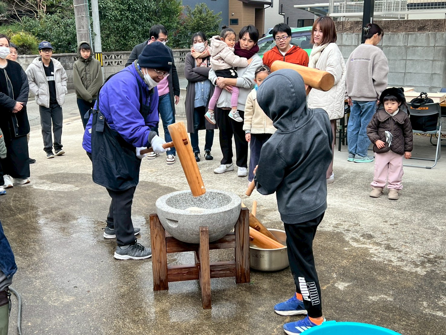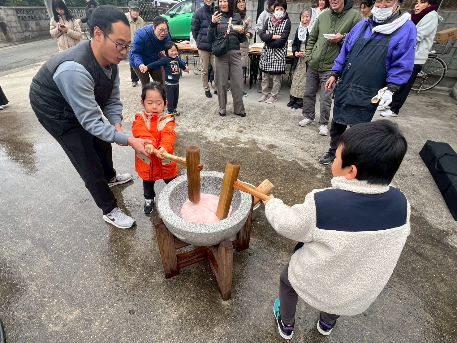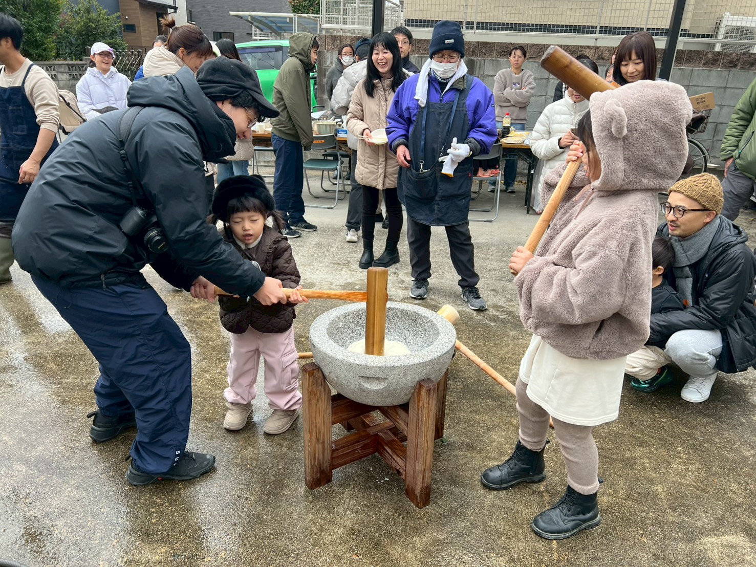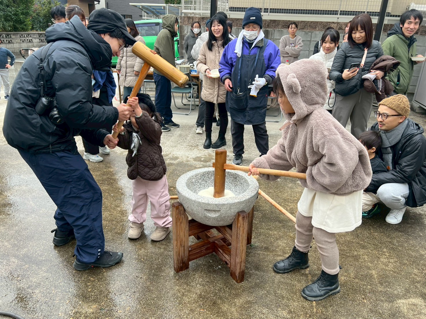そして何より目を引いたのは、小さな子どもたちの多さでした。2歳、3歳、4歳……目をキラキラさせながら臼と杵を見上げる姿が、もうたまらなく可愛い。