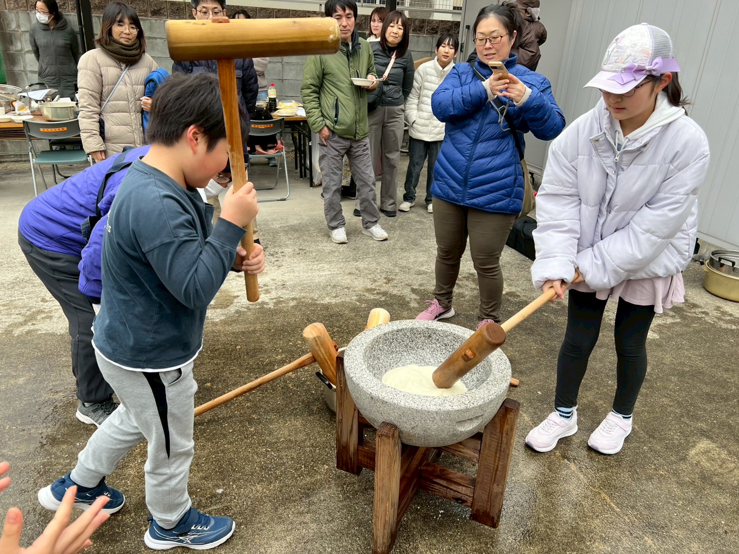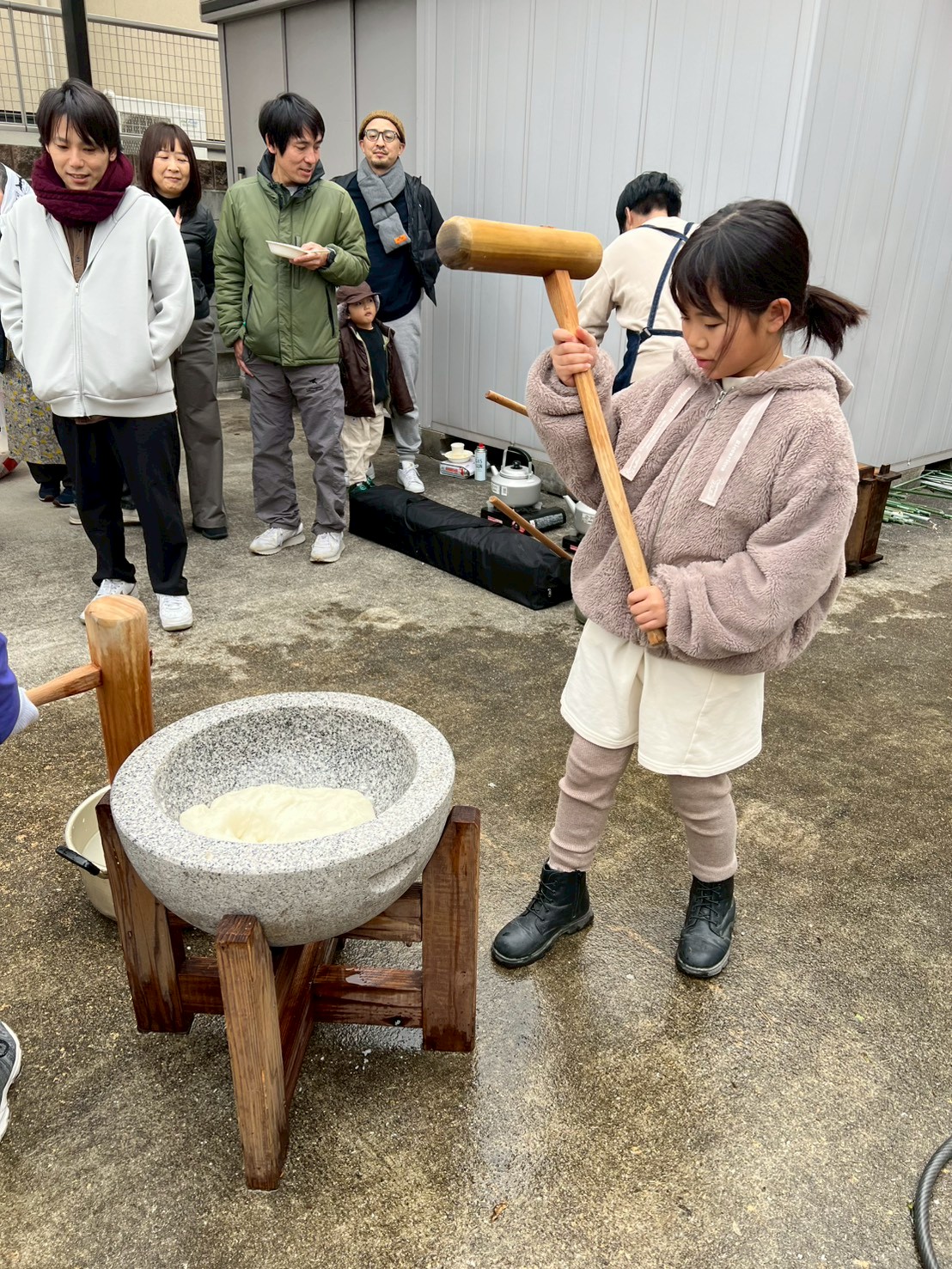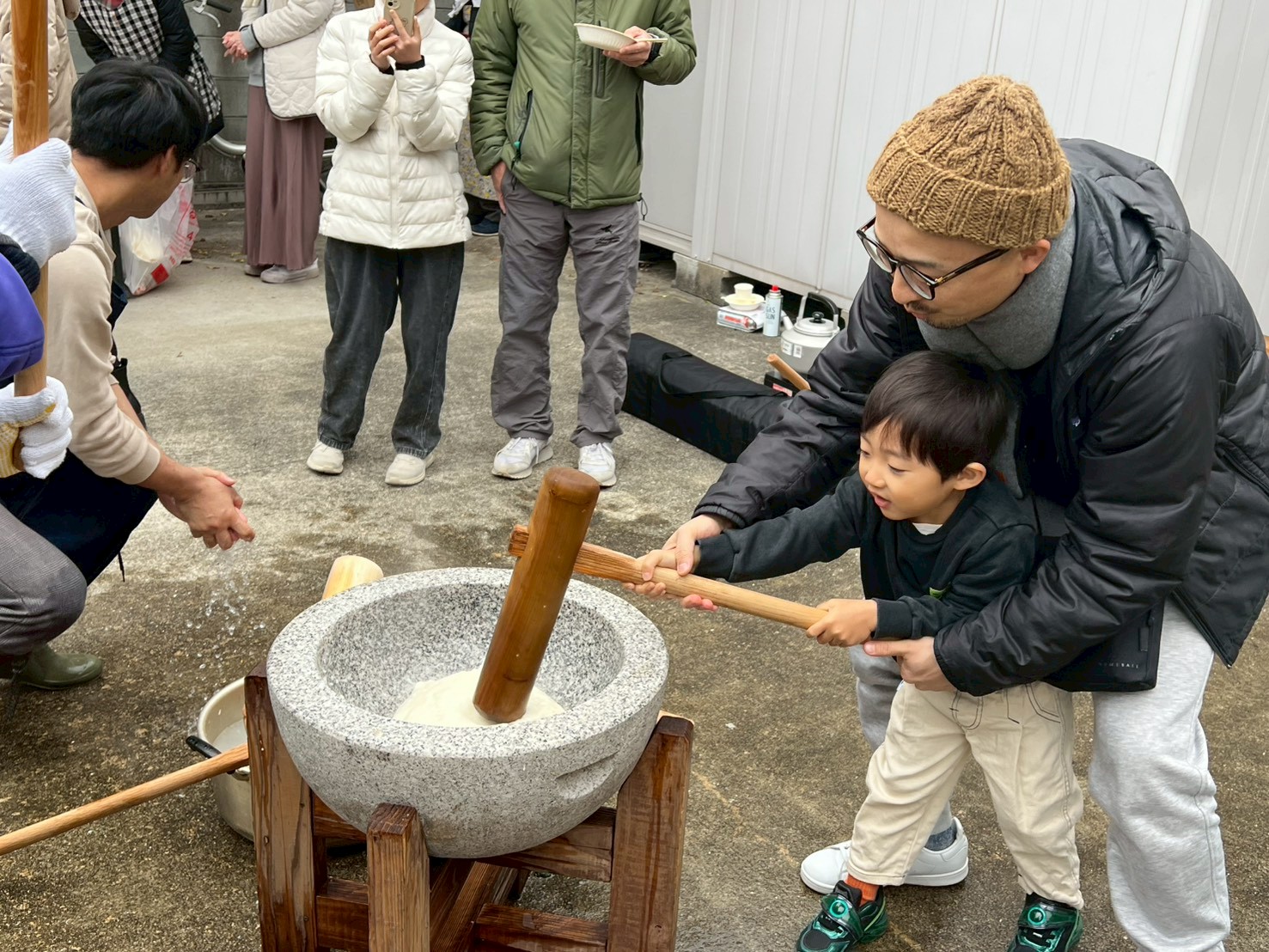 そして何より目を引いたのは、小さな子どもたちの多さでした。2歳、3歳、4歳……目をキラキラさせながら臼と杵を見上げる姿が、もうたまらなく可愛い。