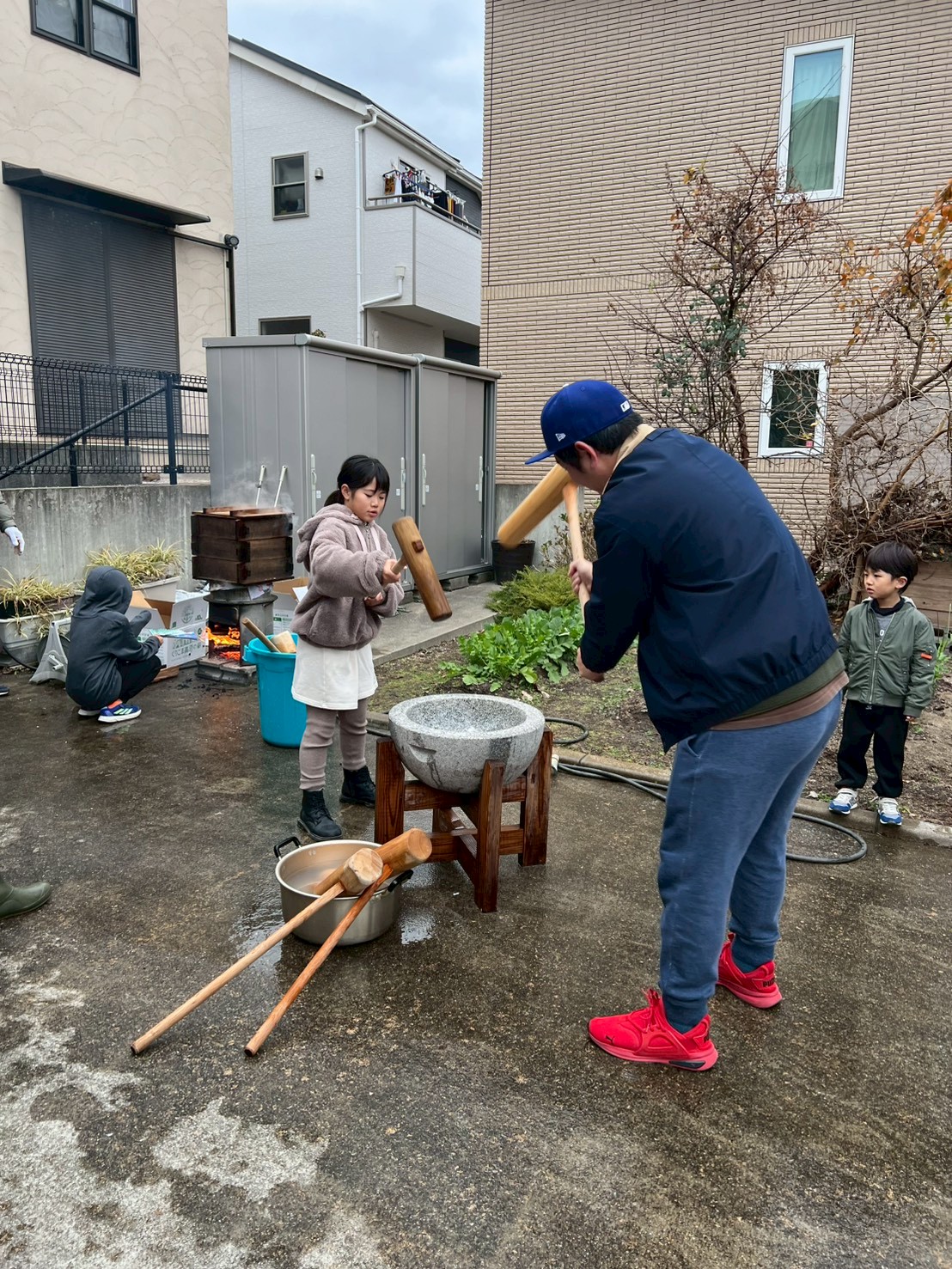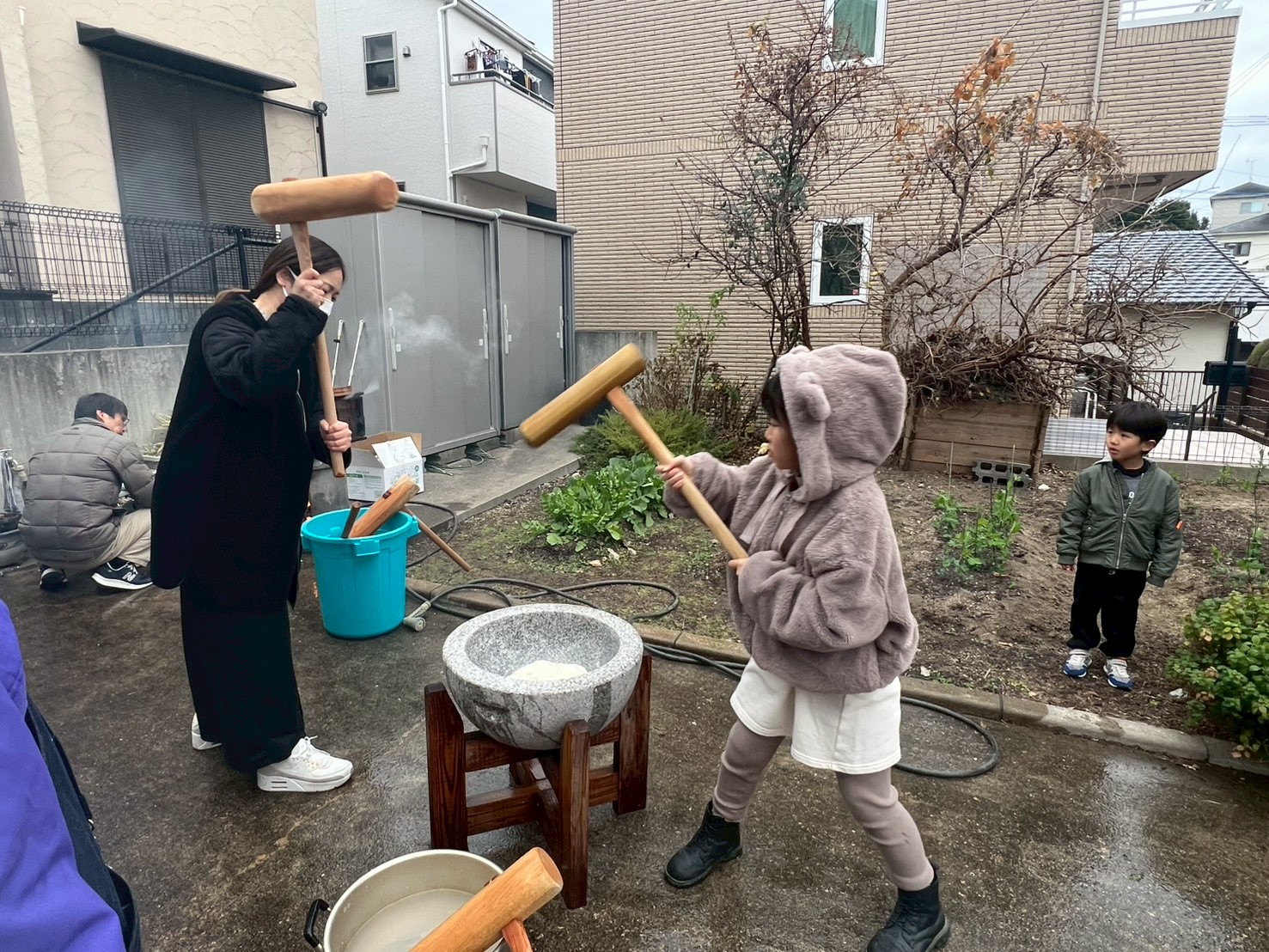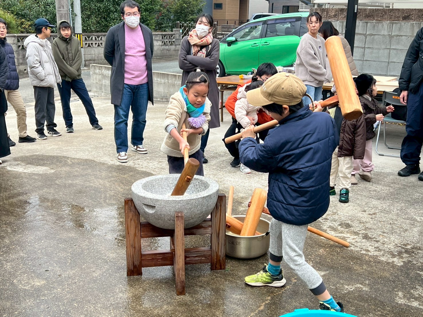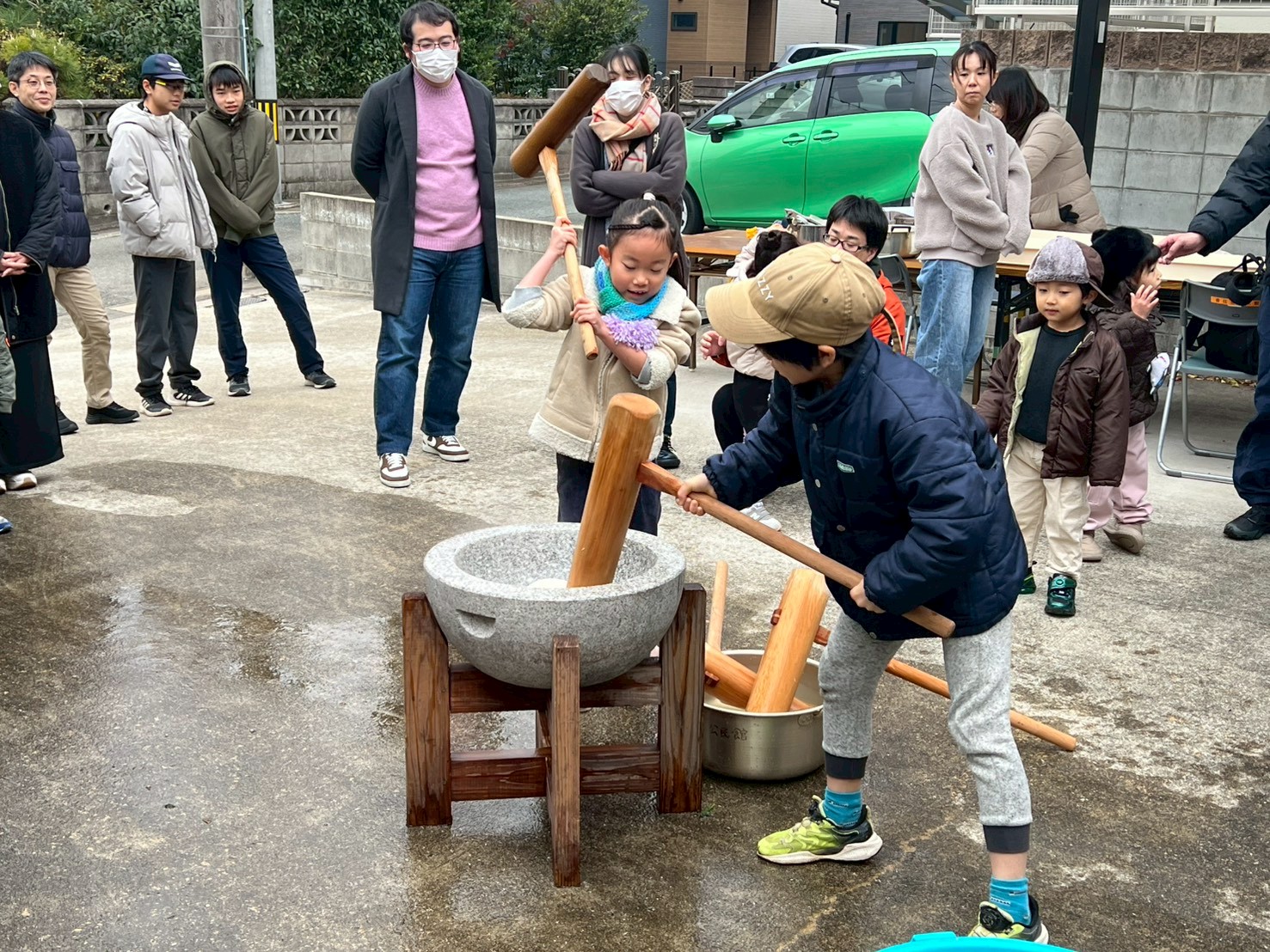 そして何より目を引いたのは、小さな子どもたちの多さでした。2歳、3歳、4歳……目をキラキラさせながら臼と杵を見上げる姿が、もうたまらなく可愛い。